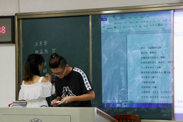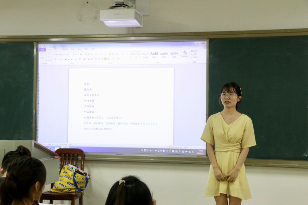 随后,2019级三个班级分别在101、102和105教室举行了各班班会。班会上,各位同学一一上台进行自我介绍及班委选举的个人意向,有才艺的同学们纷纷展示了才艺,现场气氛十分活跃。最后,研会主席团干部对同学们所提交的选举情况进行唱票,最终选出各班班委成员。