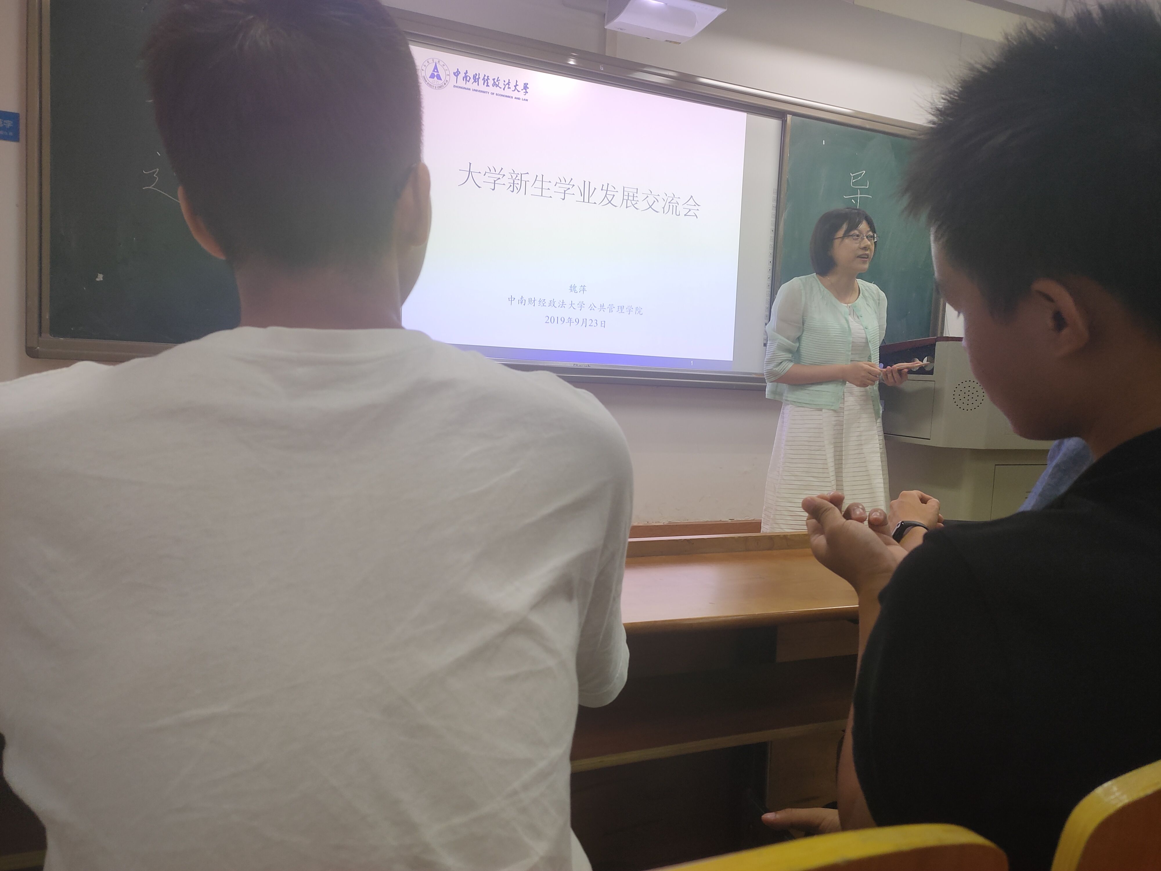 新闻网讯(学生记者 李莹)为尽快了解大学四年的学习发展,并与导师进行交流沟通,公管1904班于23日晚上在文润楼102室展开第一次新生导师交流会,班级导师魏萍老师和全班同学参加见面会。
