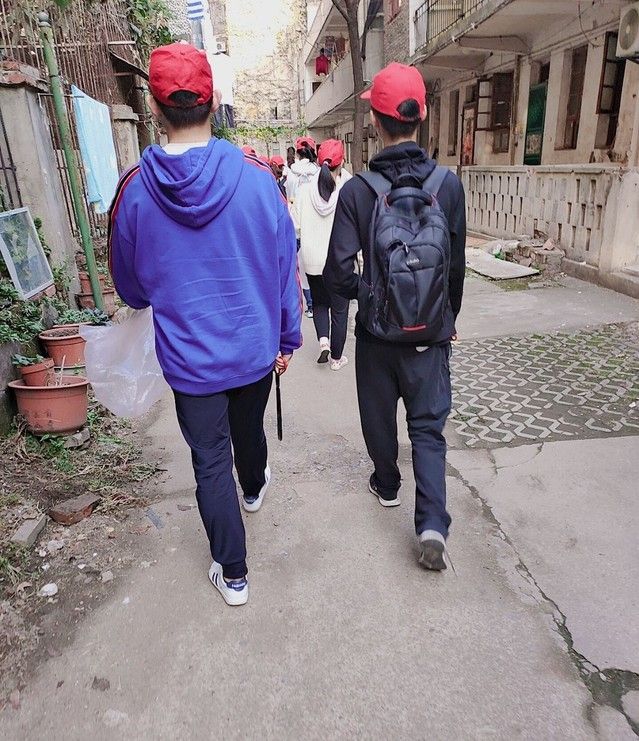有的志愿者娴熟地用工具拾起各种垃圾装进事先准备好的大塑料袋中,有的志愿者负责打扫落叶,有的志愿者负责到各户居民家门前开展垃圾分类、整理……首义社区是老旧社区,建筑物破旧,周围垃圾场也散发出阵阵臭味,但这些四号没有影响志愿者们的干劲和热情,他们仍然按质按量完成了自己的工作。