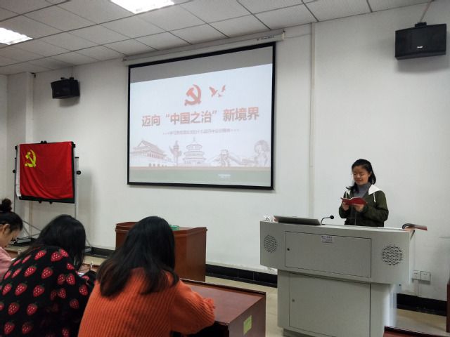 本科生2017级党支部集体学习了《中国共产党第十九届中央委员会第四次全体会议公报》。杨文雅同志以湖北武汉市百步亭社区积极建设现代文明社区的生动实践为落脚点,进一步带领大家学习了党的十九届四中全会精神。黄心怡同志对会议进行了总结,她强调党员身份既是一种荣耀,更是一种责任,身为学生党员我们要认真履行党员义务,积极发挥党员的先锋作用。