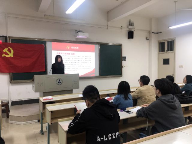 研究生1901党支部在文添楼313教室举行主题党日活动。党支部书记程欣航同志围绕“学党章,看党课,做合格共产党员”的主题,对党章产生的时代背景以及发展历程进行了简单的讲述,使全体党员同志对党章有了深层次的了解,有利于全体党员更加准确把握党章的基本要求。她明确提出学习和遵守党章的五个要求,使学生党员有了明确的努力方向。