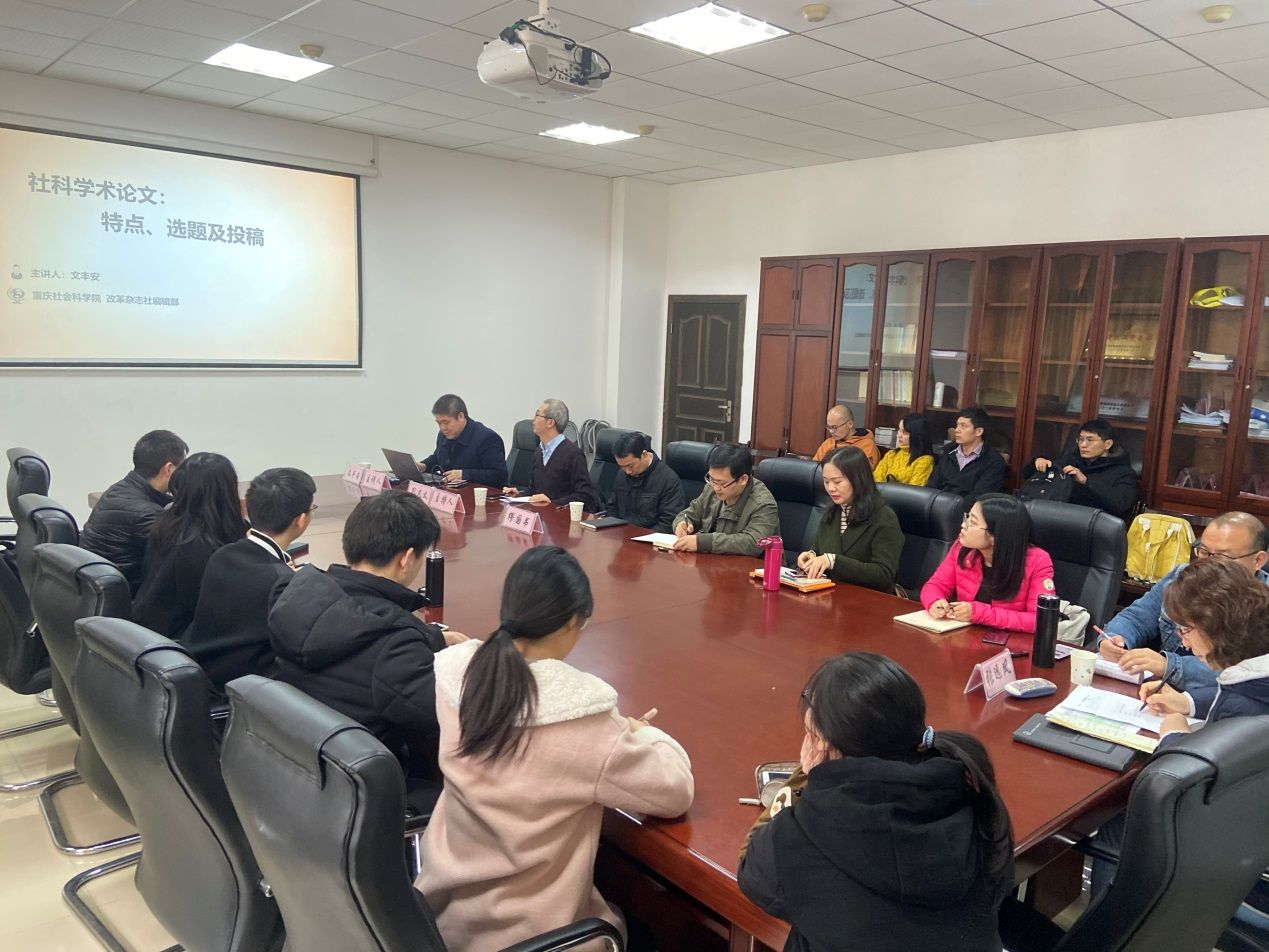 文教授首先从学术论文的特点开始讲起,学术论文必须有学术性、创造性、科学性和可读性,同时具备有用性原则、公共性原则、经验性原则、传承新原则、创新性原则、现实性原则、前瞻性原则,其中有用性是最根本的,其余六个原则可以组合成相辅相成的三对。其次,文教授以农业经济社会为例,阐述了论文选题如何做到宽视角、多层次和泛工具,选题角度要切合国家大政方针和时事热点。文教授谈到当前学术研究的发展方向,指出论文选题要有目的导向,研究社会重点、难点和热点问题,接着讲解了规范研究、案例研究、实证研究三种研究范式。第三,文教授从审稿人的角度出发,深入细致的分析如何完成一篇高质量的学术论文,并且提高命中率。标题的拟定应突出视角和实质性内容,字数不宜过多;摘要重点体现主要内容和重要信息,不需要交代选题依据;关键词的选择决定编辑是否有兴趣阅读正文,因此要把握关键性原则;引言部分开门见山,介绍论文思路和相关背景,回答为什么、怎么样和研究目的;针对正文、研究方法、模型、图表应用、参考文献、结论等常见问题,文教授分别结合不同的研究范式进行了重点讲解。最后,文教授提醒老师和同学们要学会研究期刊,找准其偏好和发文风格,尊重审稿人的意见,及时修改完善,才能达到杂志社的发表要求。