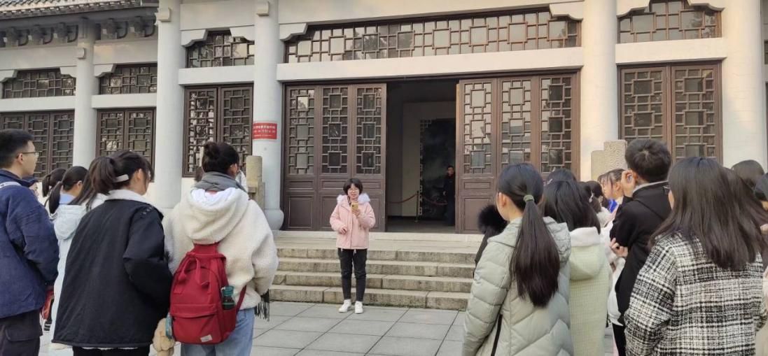 在班长的代领下,两个班同学们有序出发,抵达了目的地。认真安静地参观完展馆后,所有人聚集在了展馆前,又由二班团支书杨蒙同学为大家介绍烈士祠的由来和发展历史,引得其他参观者也纷纷驻足聆听。
