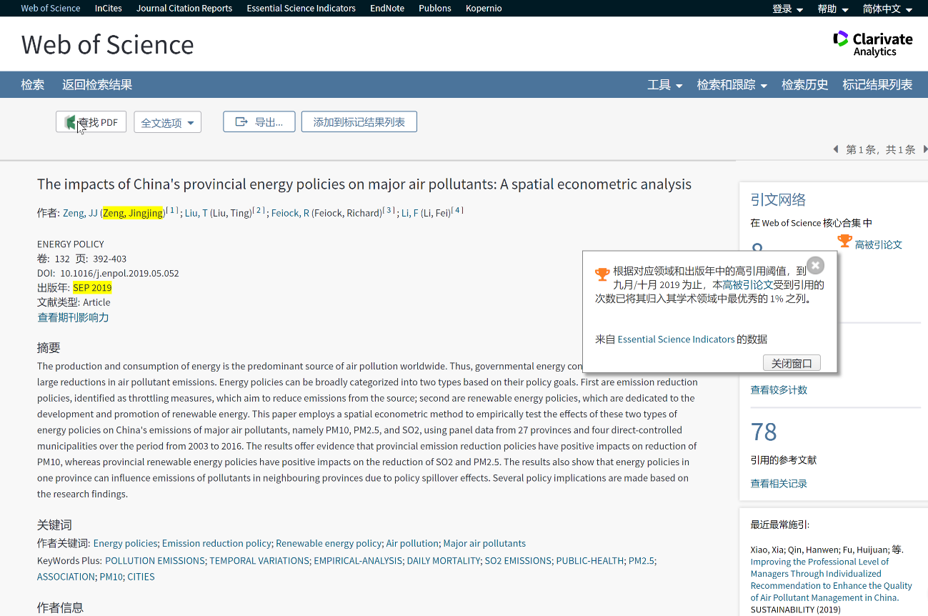 13,Google scholar公共管理与公共政策领域排名第1)的合作论文进入ESI-Highly Cited Papers(高被引论文)排行榜。该论文是第一篇由我校老师以一作身份并以米兰电竞·(中国区)为第一署名单位,在Social Science和Economics & Business领域发表的ESI高被引论文,实现了我校在经管法一流学科建设中高质量发表的重大突破。