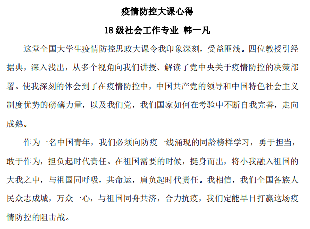 图8 18级社会工作专业研究生韩一凡的观后感