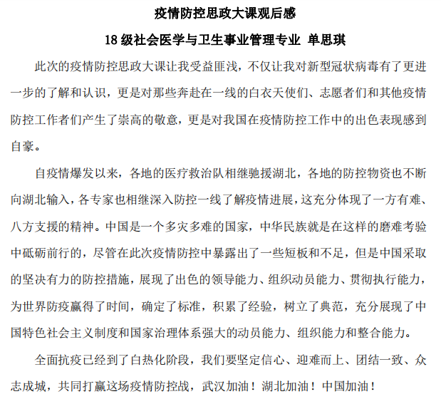 图7 18级社会医学与卫生事业管理专业研究生单思琪的观后感