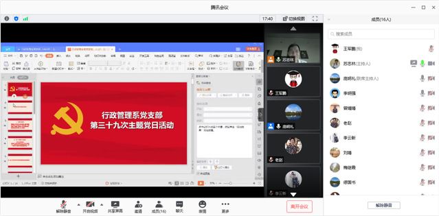 (通讯员王军鹏供稿)2020年6月18日下午,行政管理系党支部线上开展第三十九次主题党日活动,苏忠林同志主持此次活动并讲授党课。