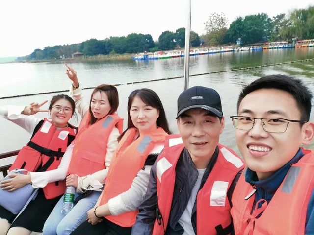 接下来老师们一起来到了景色秀丽的后官湖国家湿地公园。波光粼粼,静水流深,老师们站在湖边看风景,观湖,赏水,吹小风,尽享秋游的乐趣。游湖的乐趣自然与船相伴,万顷之湖,有着两叶游船缓速前行,船中的老师或观景,或聊天,共同欣赏这良辰美景。