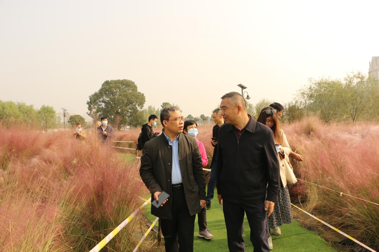 老师们从正门进入后,开始环游花博汇诸多美景。先是到达四季花海公园中,诸位老师们忍不住驻足合影留念。跨过小湖,来到了下一个美丽景观——马鞭草花海,魏晨雪老师上前细观,也不禁感叹其花朵小却胜在精美。不知不觉,老师们移步到了粉黛乱子草的世界,粉色的天地,迷人的草,老师们也互相合照,移步换景,留下这一刻最美的瞬间。