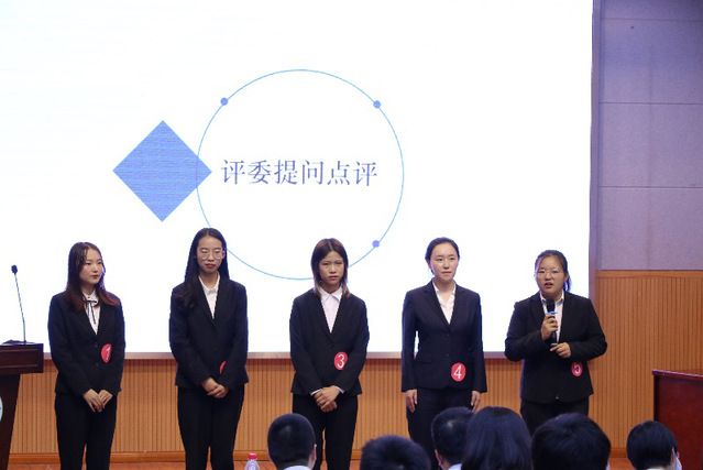 第一环节结束后,对于评委提出的“如何解决职业测试量表与自我认知产生冲突”问题,选手们迅速理清思路,各抒己见。国商1902班的李涵妤表示:量表可以帮助我们排除不适合的职业,并且相较量表她更看重职业价值观。