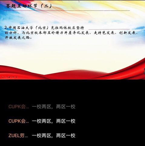 两段精彩的班级介绍视频拉开了本次联合团日活动的序幕。九省通衢,大美武汉,南湖之畔的中南大,人才济济的劳动1901班,用青春与汗水展示了自己对未来的无限憧憬和毅力前行。位居“一带一路”倡议核心,背负守护能源安全使命,中石大克校区就屹立在克拉玛依这座美丽的城市,会计1902班学子,怀报国之志,扬拼搏之帆。