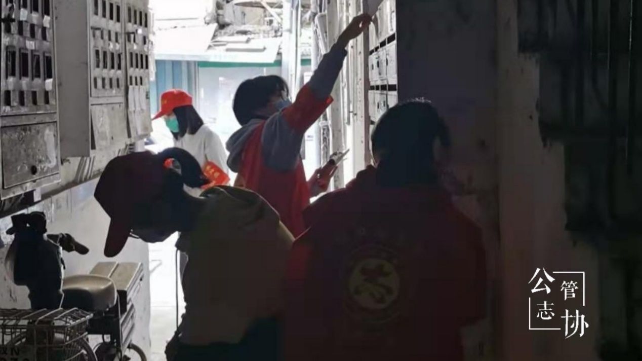 在缜密有序的策划和协同后,志愿者们来到了利济社区党员群众服务中心,领取了扫帚,畚斗、小铲刀等工具后就跟着利济社区服务中心的负责人出发,前往社区楼道开展活动。