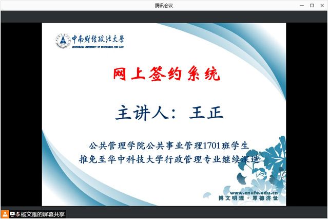 会议第三项,由公共事业管理专业的王正同学为大家讲解网上签约系统的相关事项。网签的类别分为协议就业、灵活就业和自由职业、境内升学和出国出境、自主创业和待就业等多个类型,王正同学依次针对不同类别的网签过程进行了讲解,并就签约过程中的关键事项和注意点做出了指导。