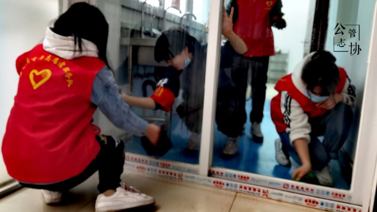 清扫社区楼道后,志愿者们归还相应工具,又领取了抹布和报纸,为利济社区党员群众服务中心做了一次门窗大清洁。志愿者们擦净之后的门窗与其之前灰尘沾染的样子形成了鲜明对比,社区服务人员们对志愿者们的工作赞不绝口。