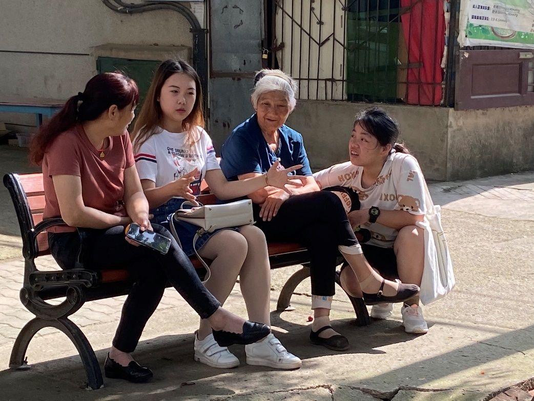 正值骄阳当空,风和日丽,社区广场上爷爷奶奶们也欢声笑语,怡然自乐。学员们分散开来,参与其中,大家主动向爷爷奶奶打招呼,坐于身侧,畅聊日常,乐道生活;一些学员看到爷爷们陶醉于象棋的较量,也深深被吸引,立于台侧观摩学习,践行着“观棋不语真君子”;也有一些学员主动和小朋友们打成一片,和他们在玩耍中拉近感情,一起收获游戏的乐趣;男孩子们自然爱好运动,他们和社区的孩子们一起参与到篮球比赛中去,弯身,投篮,一个个奔跑的身影满满都是青春的印记。