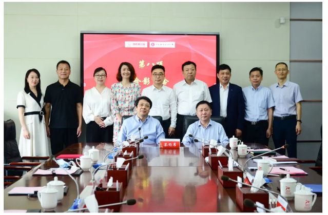 仪式伊始,现场播放了合作双方的宣传片,双方回顾了马应龙药业集团的企业文化和学校的校史校情。杨灿明在会上致以热烈欢迎,他表示双方具有广泛的合作基础和前景,在“十四五”开局之年,希望双方能够进一步开放共享资源,携手并进,风雨同行,打造校企合作的品牌和典范。