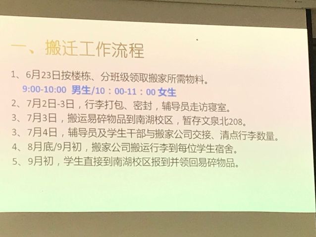 最后,李荔老师再次要求所有同学仔细观看搬家公司提供的演示视频,阅读温馨提示,并耐心解答了部分同学关于宿舍分配、床垫托运、整理箱密封、机动宿舍等的疑惑。