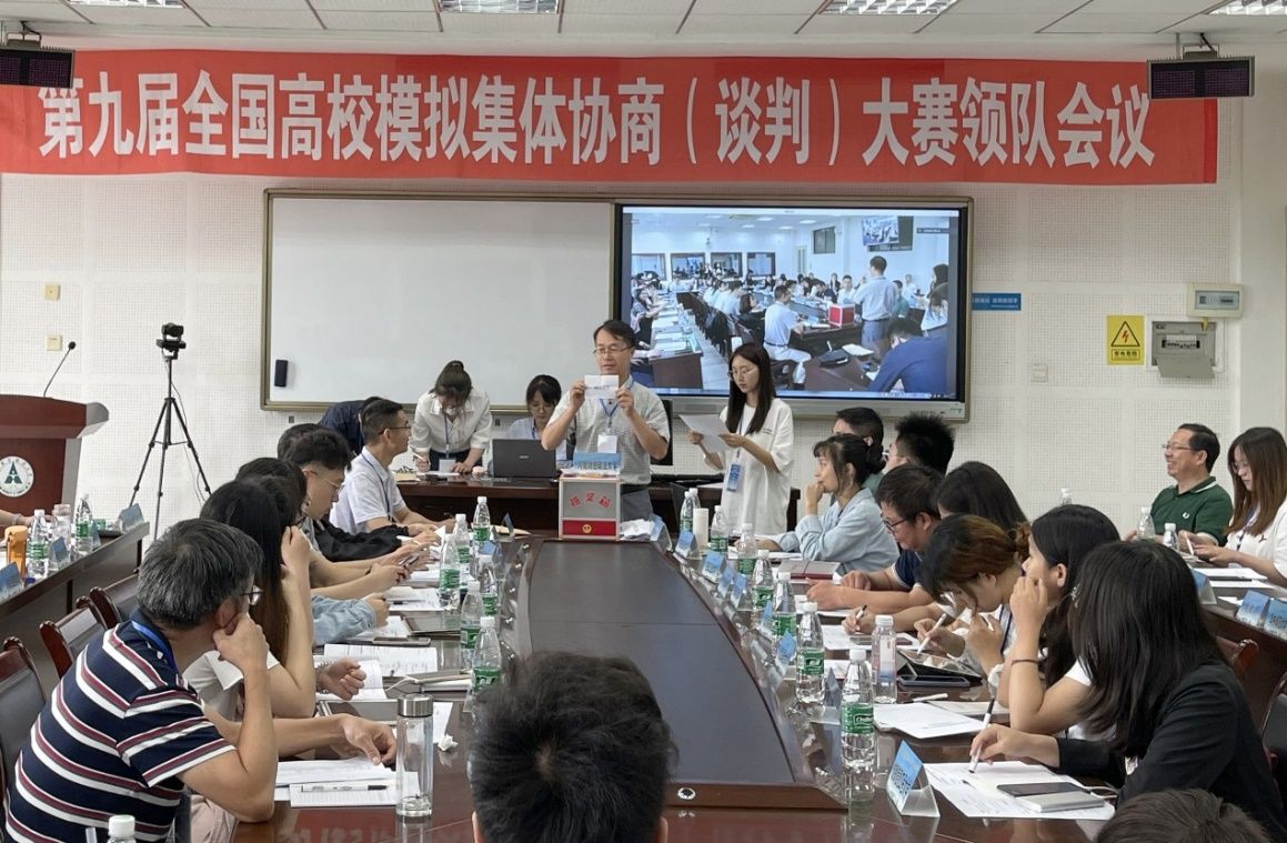 (通讯员 模拟集体谈判协会)2021年6月20日,第九届全国高校模拟集体协商(谈判)大赛领队会议在我校南湖校区文波楼三楼同声传译教学中心会议室成功召开。首都经济贸易大学、米兰电竞·(中国区)、华中师范大学、西南政法大学、河南财经政法大学、西北政法大学等全国40所高校领队老师及其委托代表参加了本次领队会议。第九届全国高校模拟集体协商(谈判)大赛拟于2021年10月在我校召开,本次领队会议旨在商讨大赛具体规则并抽签决定全国40所大学80支参赛队伍的对阵场次。