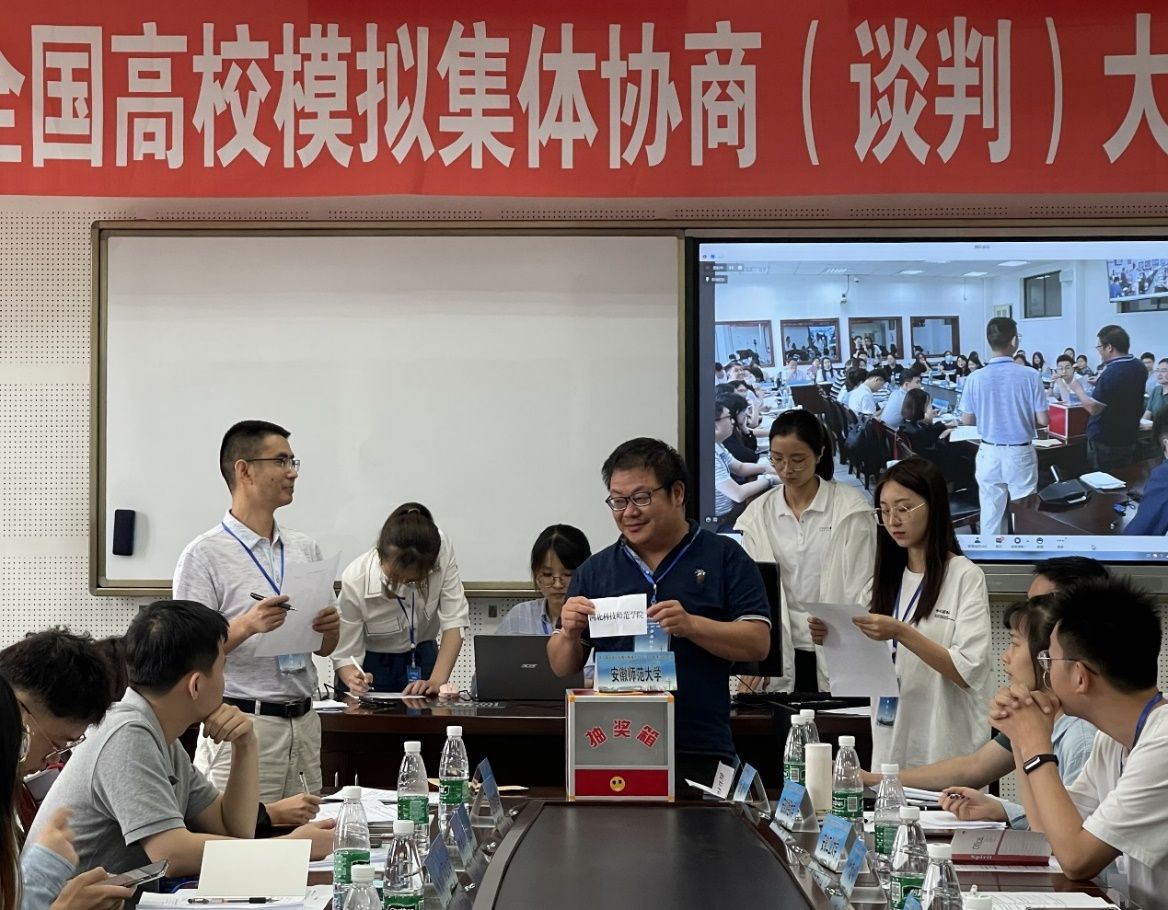 最后,在陈天学老师的主持下,各高校代表依次进行抽签决定比赛对手与分组,最终确定大赛80支队伍的对阵双方,抽签过程全程公开透明。至此,第九届全国高校模拟集体协商(谈判)大赛领队会议圆满结束。