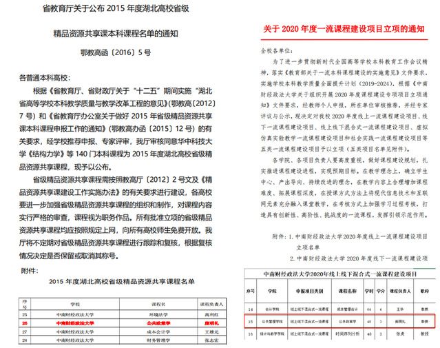 长期以来,《公共政策学》教学团队十分注重课程建设,曾于2016年被批准为“湖北高校省级精品资源共享课”;2019年上线的《公共政策学》慕课成功在线运行4期,累积选课人数超2万人次;2020年获批学校“线上线下混合式一流课程建设项目”。