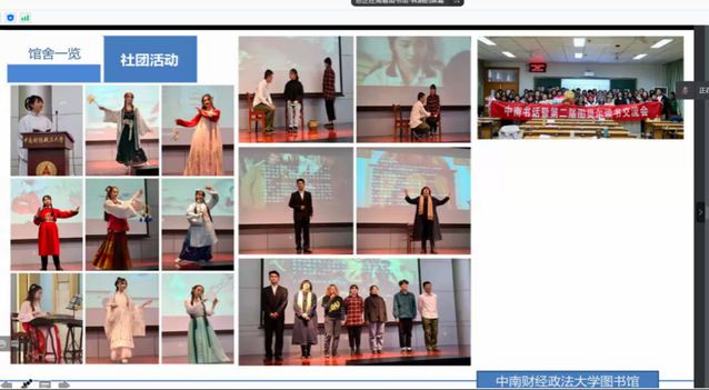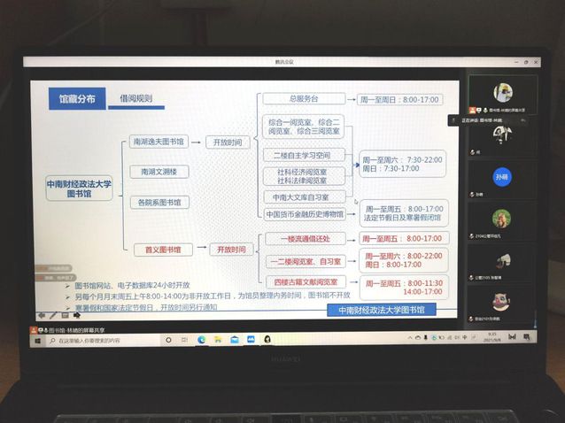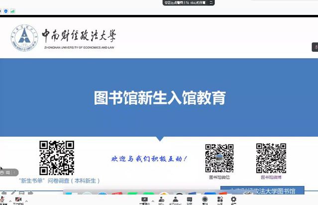 林婧老师首先向大家介绍图书馆的基本情况,学校图书馆分有南湖校区逸夫图书馆、首义校区图书馆和南湖校区老图书馆(文溯楼)3座馆舍,建筑总面积约3.9万平方米,拥有阅览座位约1900席。分出办公室、文献资源建设部、信息咨询服务部、网络技术服务部、读者服务部、宣传推广部、首义综合管理部、中国货币金融历史博物馆等8个业务和管理部门。截止2020年12月底,我馆馆藏纸本文献共347多万册,2020年新增馆藏25560册。图书的品种和数量丰富齐全,主要以财经、政法和管理类文献为主,覆盖社会科学及自然科学,为研究级收藏单位。收藏的报刊中,有解放前的重要中文期刊《新青年》、《东方杂志》、《国闻周报》等,参考保存价值较高。收藏的古籍线装书及解放前的出版物数量较多,其中善本书有110种。