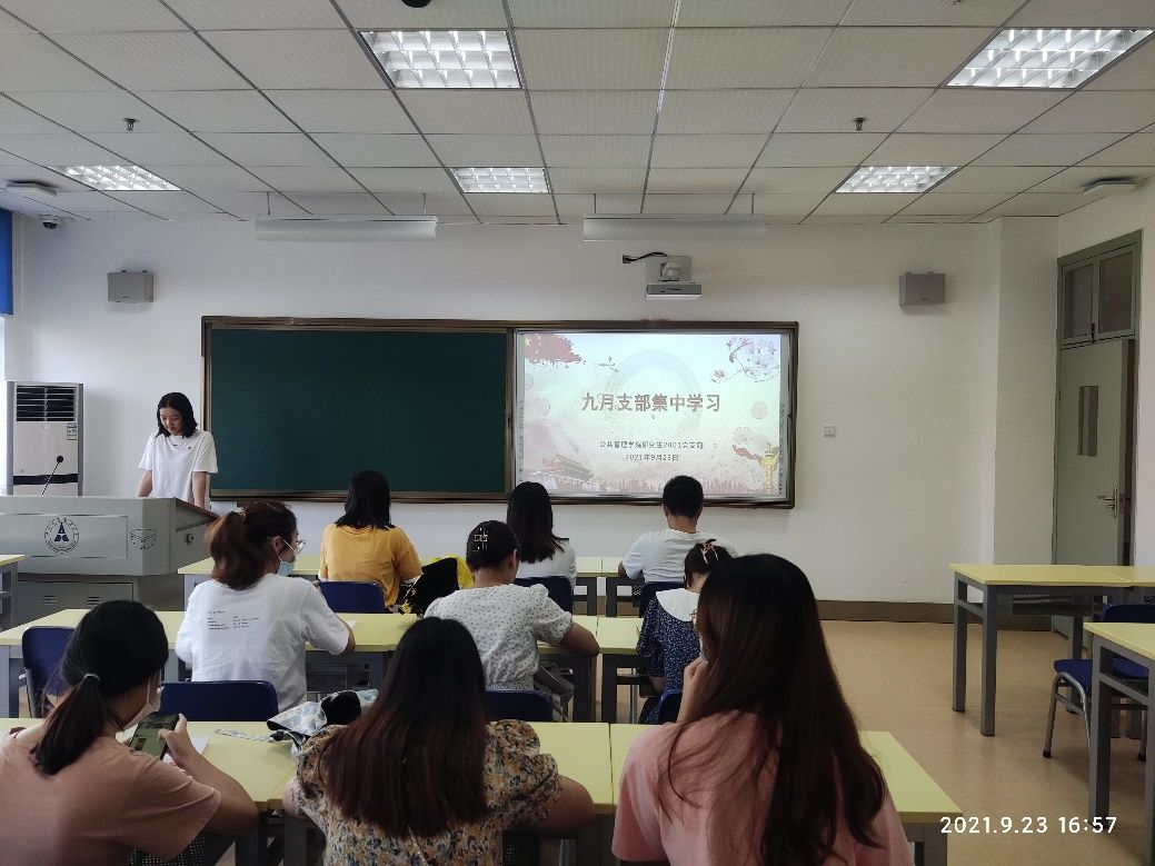 研究生2001党支部在文澴楼522教室举行九月支部集中学习
