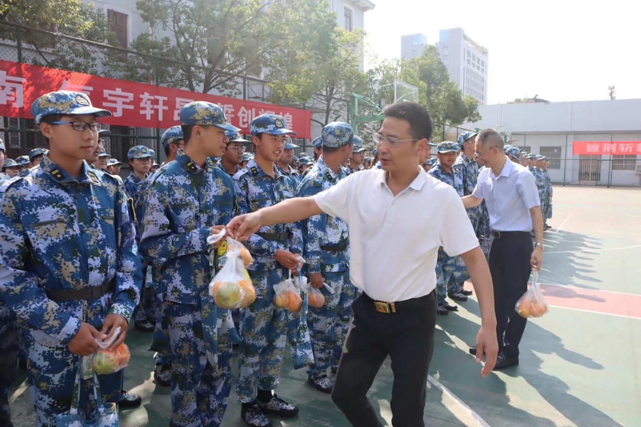 致辞过后,张院长与师生代表一起为新生们分发牛奶、橙子等慰问品,代表学院为新生们送去烈日下的一份“清凉”。张院长不忘叮嘱同学们:“要劳逸结合、注重饮食,利用军训磨练精神意志,为今后的学习成长打好身体和精神基础”。同学们纷纷表示,在接下来的军训中一定不负嘱托,克服困难、认真训练,以昂扬的斗志完成各项训练任务,展现“公管人”良好精神风貌。