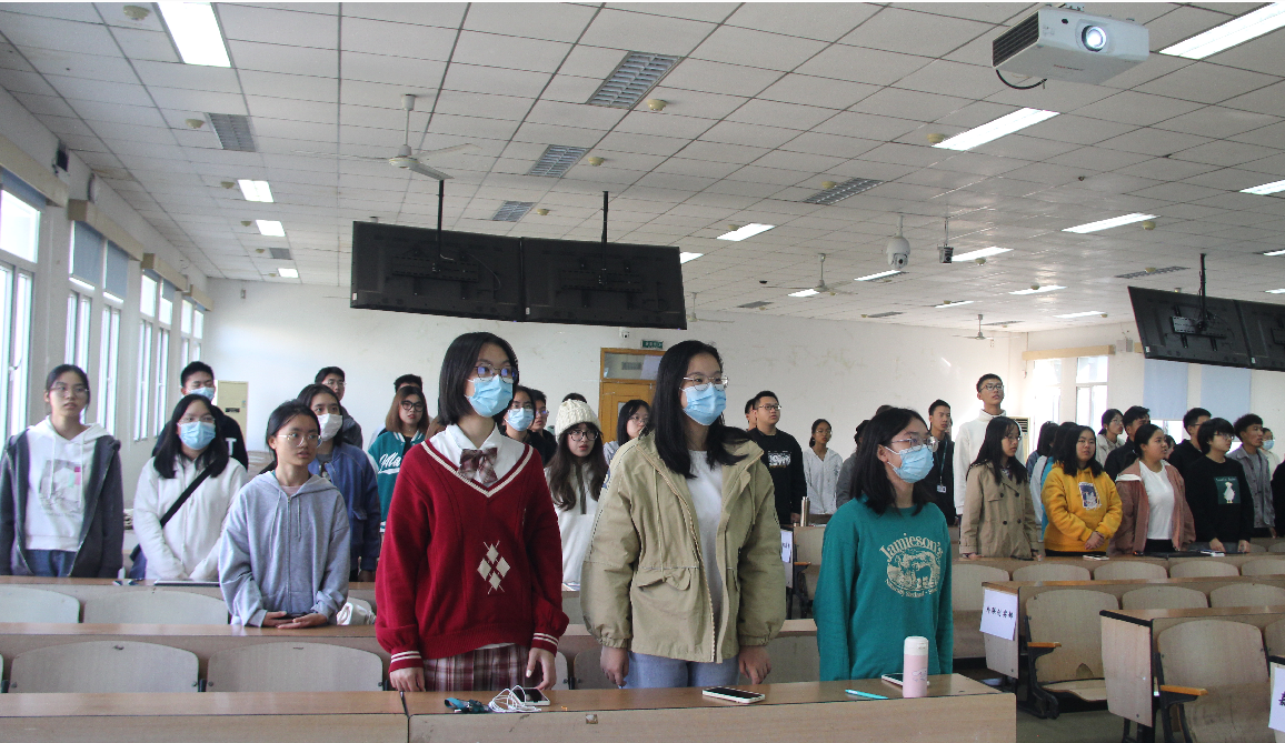 会议开始,全体参会人员起立,共同奏唱共青团团歌。同学们热情高涨,激情洋溢。随着奏唱团歌的环节的结束,第三期“分层次一体化”培训班暨第一次理论培训大会正式拉开帷幕。