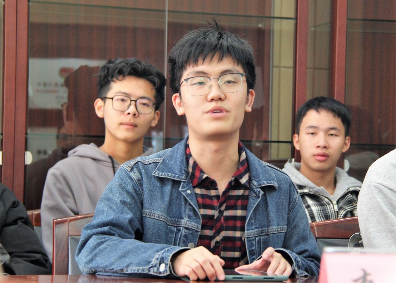 接着,我院足球队队长排尔哈提介绍了我院足球队的发展历程,从作为“小院弱队”的饱受歧视,到直面困难、奋起拼搏并夺取冠军宝座的自立自强。他强调正是队员们的同心协力、英勇顽强,才成就了最后的胜利。最后,他表达了继续带领学院足球队再创辉煌的决心。