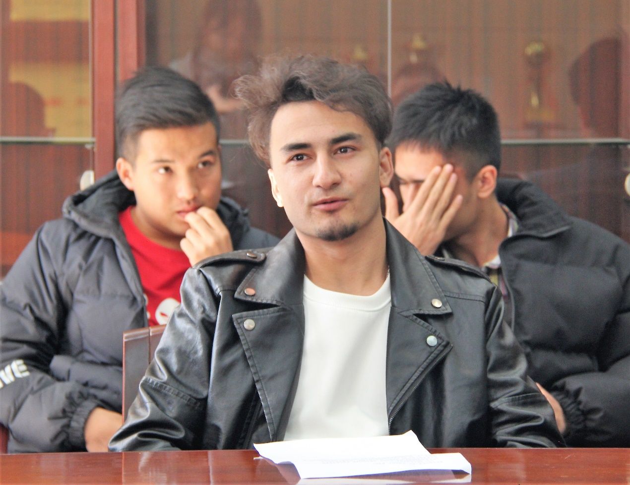 接着,我院足球队队长排尔哈提介绍了我院足球队的发展历程,从作为“小院弱队”的饱受歧视,到直面困难、奋起拼搏并夺取冠军宝座的自立自强。他强调正是队员们的同心协力、英勇顽强,才成就了最后的胜利。最后,他表达了继续带领学院足球队再创辉煌的决心。