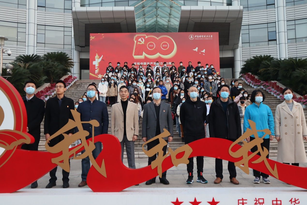 百年风雨兼程,中国共产党在苦难中成长,在挫折中奋起,在奋斗中壮大。百年风华正茂,中国共产党坚守初心,艰苦奋斗,创造了彪炳史册的伟大奇迹。奏唱完国歌后紧接着的是全体党员重温入党誓词,与会师生神情肃穆,铿锵的誓言里饱含着对党的崇高敬意。