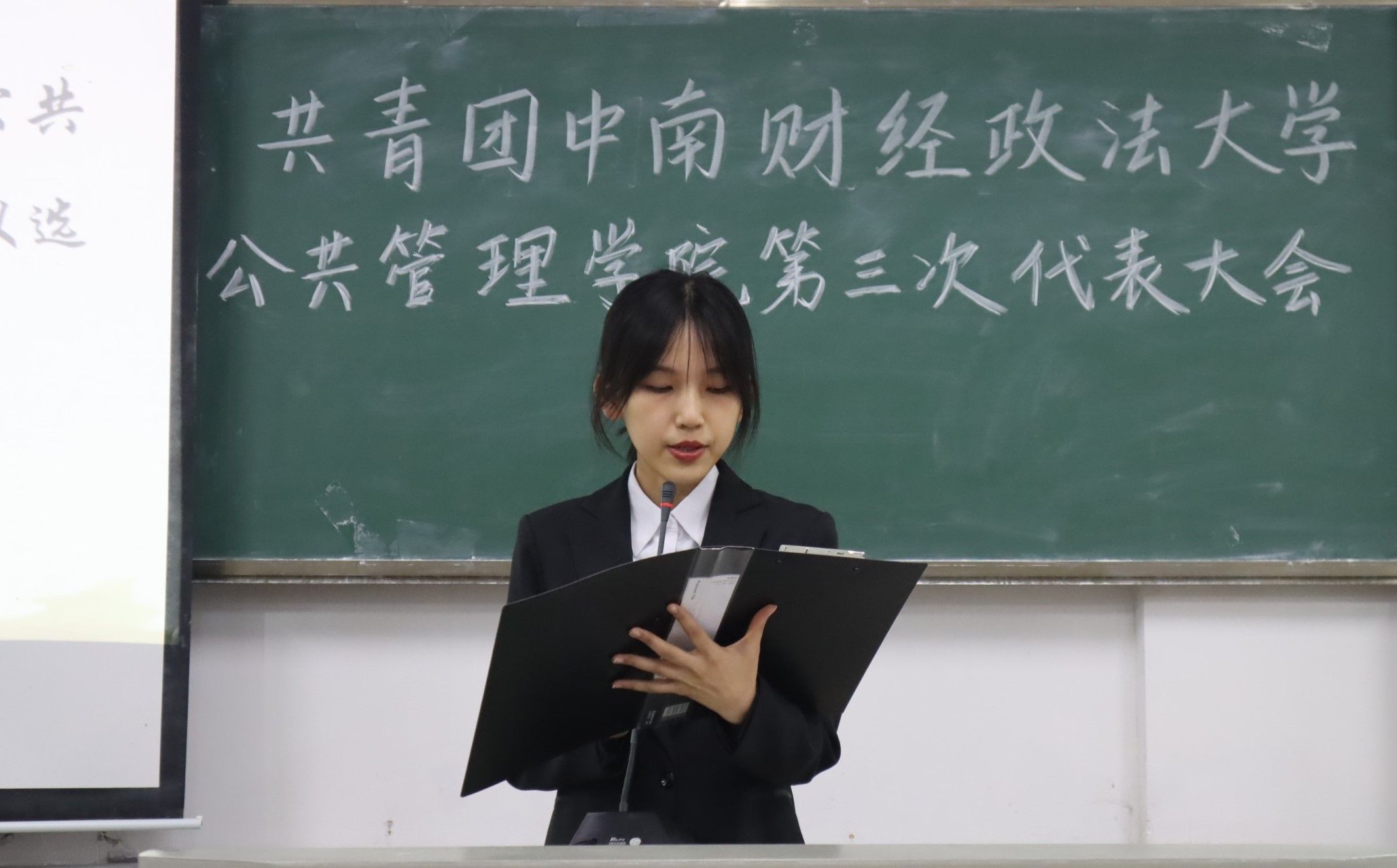 莅临本次会议的嘉宾有:公共管理学院党委刘茂盛副书记和研办主任魏晨雪老师。莅临本次会议的教师团员代表有:校团委赵长越老师,本科2021级班级导师蒋俊男老师,院团委书记张黎明老师。包括教师团员代表在内,我院共有71名正式代表参加大会。大会由我院第二十届分团委学生副书记周涛涛主持。