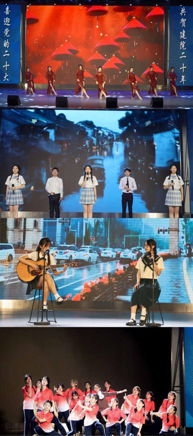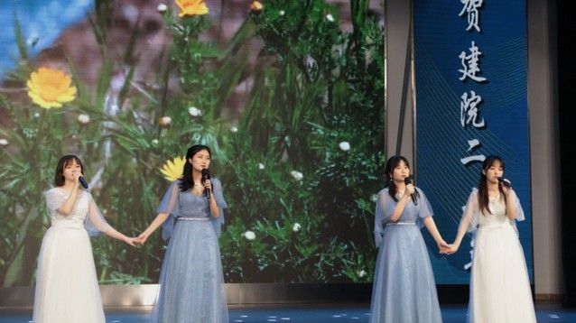 随着笛声渐渐消散,台下的观众逐渐从醉入梦乡的舞蹈中回过神来。随之而来的是由2021级本科生郜恰、张塬、鞠滢翀、孙英航、马一茗五位同学带来的朗诵《青春万岁》。通过五位同学声情并茂的朗诵,学子们仿佛又回到了那个挥洒着青春与汗水的岁月,回到了那个伴着芬芳花儿,憧憬着美好未来的夏天。