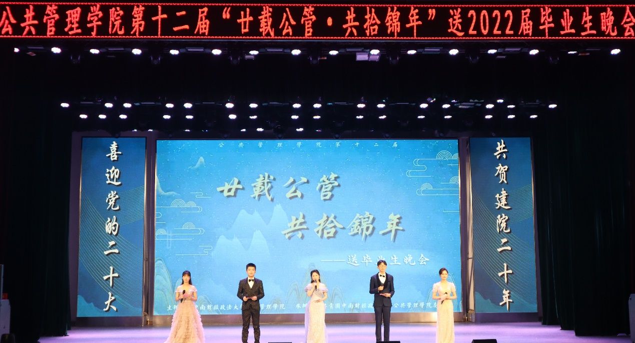 新闻网讯(学生记者 郜恰 摄影 郜恰 乔佳欣)2022年6月2日晚,伴随着六月的微风,公共管理学院2020届毕业生也迎来了属于他们的毕业季,在这个正值公管学院建院20周年的特殊日子里,同时为喜迎党的二十大胜利召开,我院在南湖会堂举办了“廿载公管,共拾锦年”送2022届毕业生晚会。