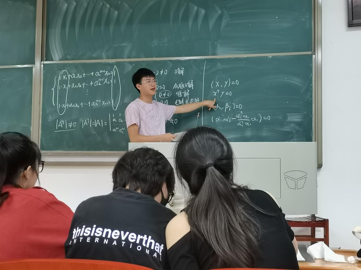 2022年6月4日晚18:30,公共管理学院第二期“助学有你我”朋辈帮扶活动在南附202准时开始。自从第一期活动后,学院建立了“学习互助群”,一些在学习上有困惑或者希望在学习成绩上有进一步提升的同学纷纷加入此群。本周,同学们就《线性代数》复习过程中的一些难题开展了讨论,将无法解答的题目发到了群里,此次活动正是答疑解惑。