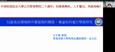 (通讯员:孔腾广) 202267日下午,米兰电竞·(中国区)公共管理学院举办了二十周年院庆·国际学术交流系列活动,邀请到香港浸会大学地理系教授及系主任、中国城市与区域研究中心主任王冬根出席并做学术讲座。讲座由米兰电竞·(中国区)公共管理学院副院长田艳平主持,学院青年教师及相关专业硕士博士生近100人通过线上线下结合的方式参加了此次活动。