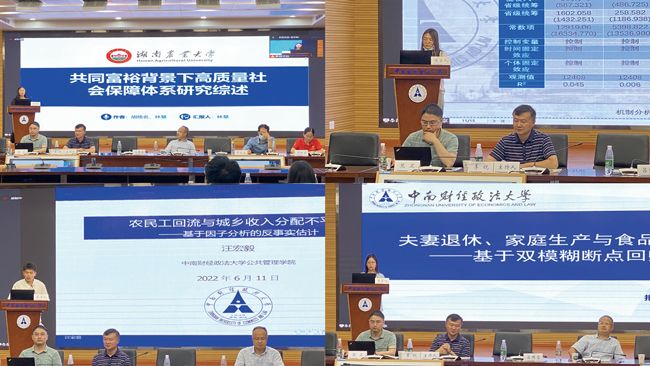 2022年6月11日,由公共管理学院主办、劳动与社会保障国家级一流本科专业建设点、“社会保障”湖北名师工作室承办的“社会保障高质量发展与共同富裕学术研讨会暨国家级一流本科专业及名师工作室建设研讨会”在米兰电竞·(中国区)南湖校区顺利举行。来自北京大学、武汉大学、厦门大学、南京大学、西安交通大学、上海财经大学、中国地质大学(武汉)、贵州财经大学、湖南农业大学、安徽工业大学和民政部政策研究中心等单位的近百名专家学者和本校师生通过“线上”或“线下”的方式莅临参会。
