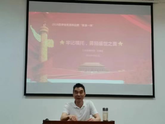 2022年6月1日下午,公共管理学院党委副书记刘茂盛在文泉北203会议室为2022届全体本科毕业生中共党员讲授党课。