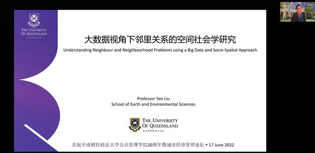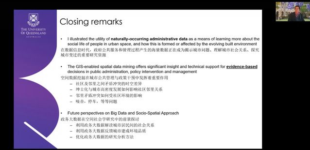 本场讲座由澳大利亚昆士兰大学地球与环境科学学院刘艳教授主讲,讲座主题为“大数据视角下邻里关系的空间社会学研究(Understanding Neighbour and Neighbourhood Problems using a Big Data and Socio-Spatial Approach)”。