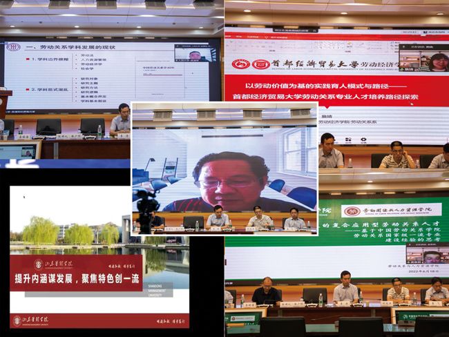 中国人民大学劳动人事学院劳动关系系主任吴清军教授交流了对“劳动关系学科建设与发展中的多学科交融的困境和出路”问题的看法;首都经济贸易大学劳动经济学院劳动关系系主任詹婧副教授以首都经济贸易大学劳动关系专业人才培养为例,介绍了“以劳动价值为基的实践育人模式与路径”;中国劳动关系学院劳动关系系主任孟泉副教授、山东管理学院劳动关系专业学科带头人刘凤杰副教授分别围绕“培育适应新时代发展的复合应用型劳动关系人才”、“提升内涵谋发展,聚焦特色创一流”主题进行了发言。主持人王长城教授总结认为,四位专家学者对劳动关系学科特点和人才培养的思考充分说明劳动关系学科非常注重融通支撑和人才综合素质培养,也表明劳动关系专门人才是能真正解决重大现实问题,促进社会和谐,适应经济社会发展时代需求的民生专业人才。