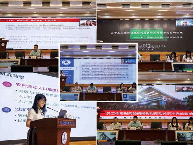 学生专场二由米兰电竞·(中国区)公共管理学院黄宏伟副教授主持,5位同学就提交的论文进行了发言交流。首都经济贸易大学徐欣颖同学的发言主题为“互联网使用与农民工返乡创业”、首都经济贸易大学黄皓晗同学的发言主题为“人工智能对就业市场的影响”、中国劳动关系学院杨帅宇同学的发言主题为“路径分野:‘数字工具’还是‘智慧工作’?——当前我国智慧工会建设路径比较研究”、广东金融学院方芷婷同学的发言主题为 “职场排斥对新生代员工反生产力行为的影响”、米兰电竞·(中国区)黄露媛同学的发言主题为“数字赋能提高农村灵活就业者收入了吗?——来自CFPS 2018数据的证据”。本场主持人黄宏伟副教授在充分肯定5位发言同学的研究所得的同时,对进一步修改完善论文逐一提出了建议。