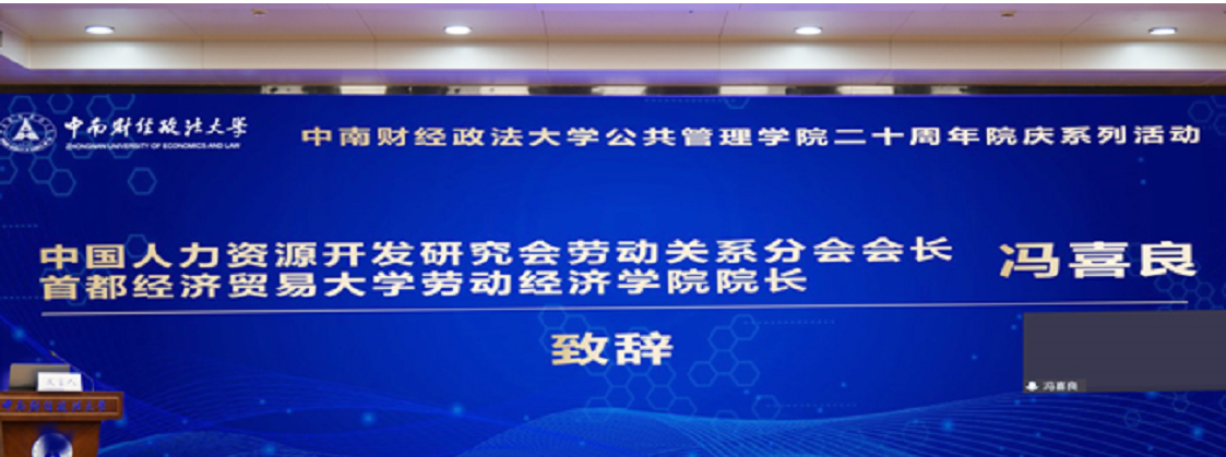接下来,中国人力资源开发研究会劳动关系分会会长、首都经济贸易大学劳动经济学院院长冯喜良教授通过远程连线会场,介绍了全国劳动关系学科的发展历程,以及中国人力资源开发研究会劳动关系分会的建设状况。