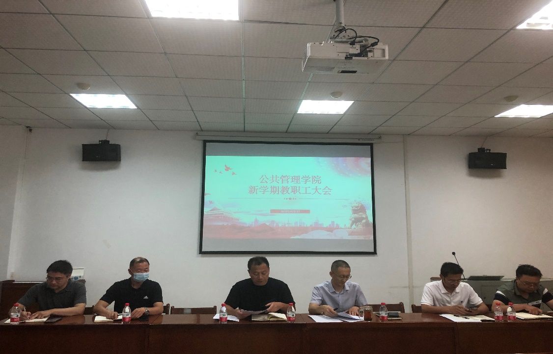 新闻网讯(通讯员:向双申)2022年9月1日下午,公共管理学院2022年秋季新学期教职工大会在文泉楼北225会议室召开。公共管理学院党委书记李宏教授,院长张广科教授,MPA教育中心主任杜兴洋教授,副院长田艳平教授、熊卫教授、田进教授及学院教职工参加本次大会,会议由李宏书记主持。