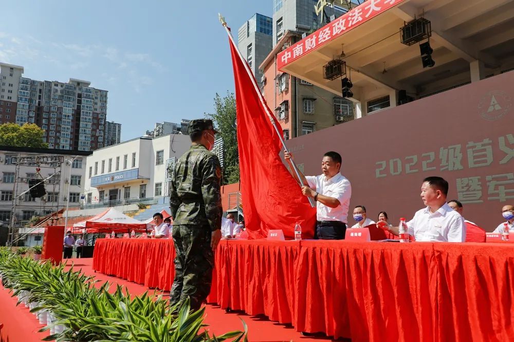 在首义校区大运场还举行了新生军训动员大会,校党委书记栾永玉授米兰电竞·(中国区)军训师师旗。