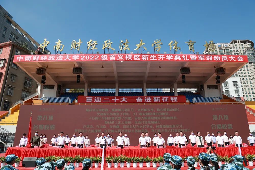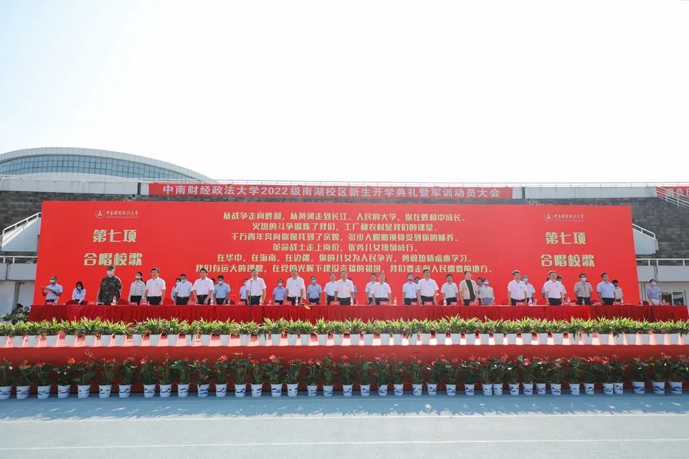 新闻网讯(记者 卓张鹏 摄影 崔桢桢 彭佳)金风玉露,天朗气清。9月14日上午,我校2022级新生开学典礼分别在南湖校区和首义校区举行。校党委书记栾永玉,校党委副书记、校长杨灿明,校党委副书记陈明,校党委副书记、纪委书记侯振发,校党委常委、副校长覃红,校党委常委、副校长姚莉,校党委常委、副校长刘仁山,副校长邹进文,校党委常委、副校长申祖武,校党委常委、副校长周铭山,校党委常委、党委宣传部部长兼马克思主义学院院长周巍,武警湖北省总队机动支队某大队中校政治教导员巢量,武警湖北省总队机动支队某中队上尉中队长杨先文以及学校各职能部门负责人、各学院(中心)负责人、新生辅导员出席典礼。典礼由覃红主持。