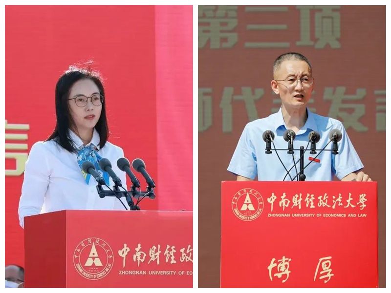 新闻与文化传播学院院长罗晓静、公共管理学院院长张广科作为教师代表分别在南湖校区、首义校区开学典礼上发言。