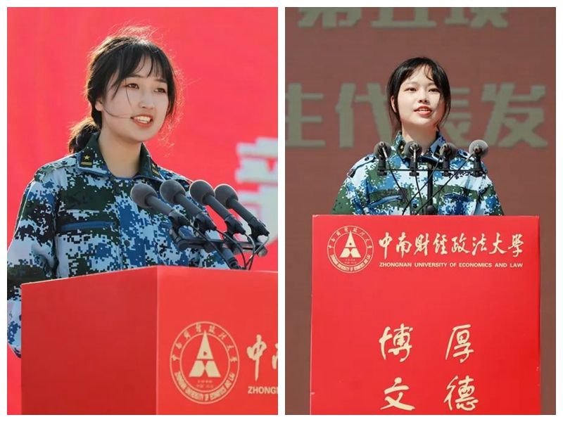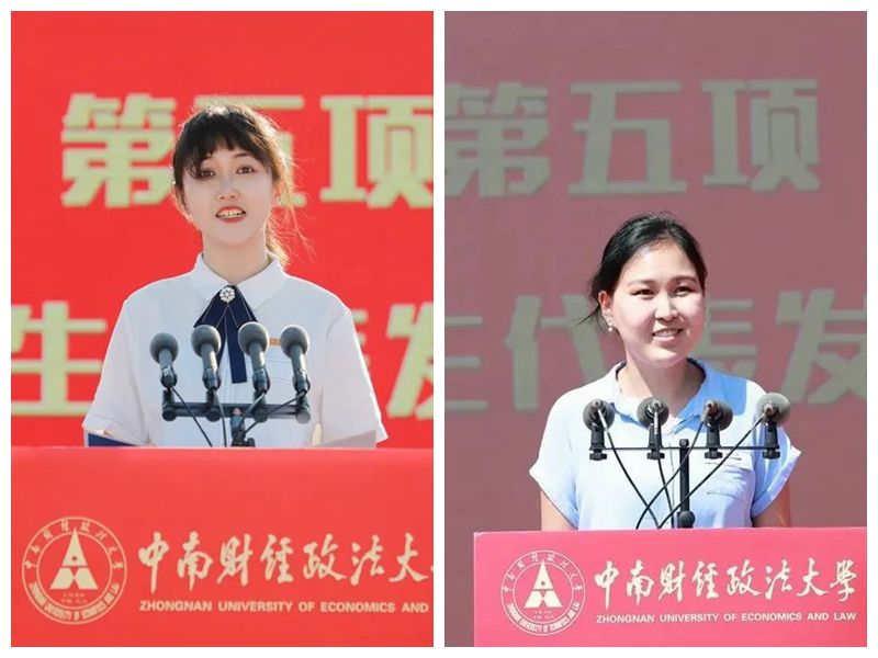 法学院2021级诉讼法学专业硕士研究生温晖蕾和金融学院2020级本科生张栩源作为在校生代表在开学典礼上发言。