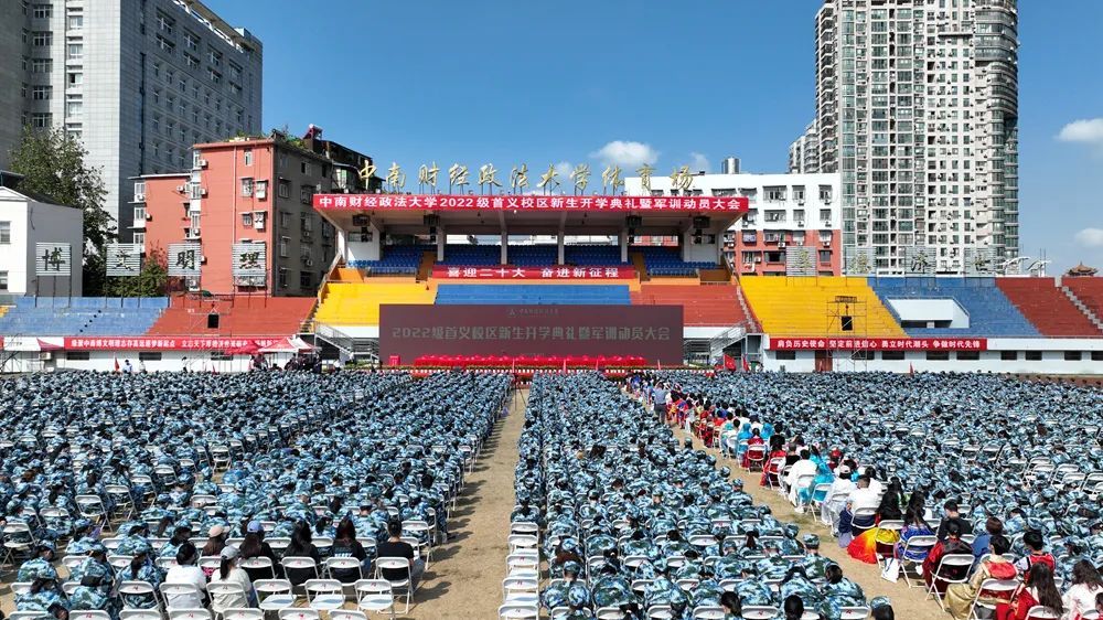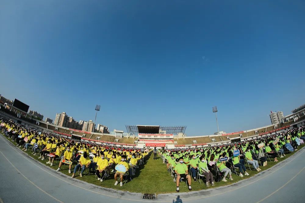 上午8:00和10:00,开学典礼分别在南湖校区体育运动中心和首义校区大运场举行,9000余名新生参加典礼。