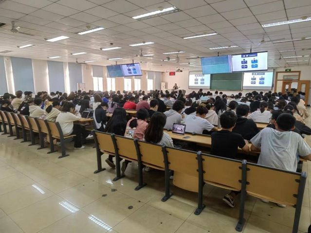 在升学层面,首先,郭老师着重介绍了保研的途径和要求——重视每门科目的平均成绩、积极参与各类竞赛、前三年打下扎实的基础;接下来,郭老师又对国内考研的形势进行了详细的介绍,并分析了近几年的考研趋势及考录比,指出了考研目前面对的严峻形势,建议同学们根据自己的实际情况选择考研院校。郭老师提到,考研不是回避就业的避风港,也不是找到好工作的唯一出路,考研的目的一定要明确且端正,且考研和就业并不冲突。关于国外留学,郭老师也介绍了几种出国项目类型以及留学需要做的大学生涯规划,如准备雅思/托福考试、参与海外学习交换等,为同学们提供了参考。