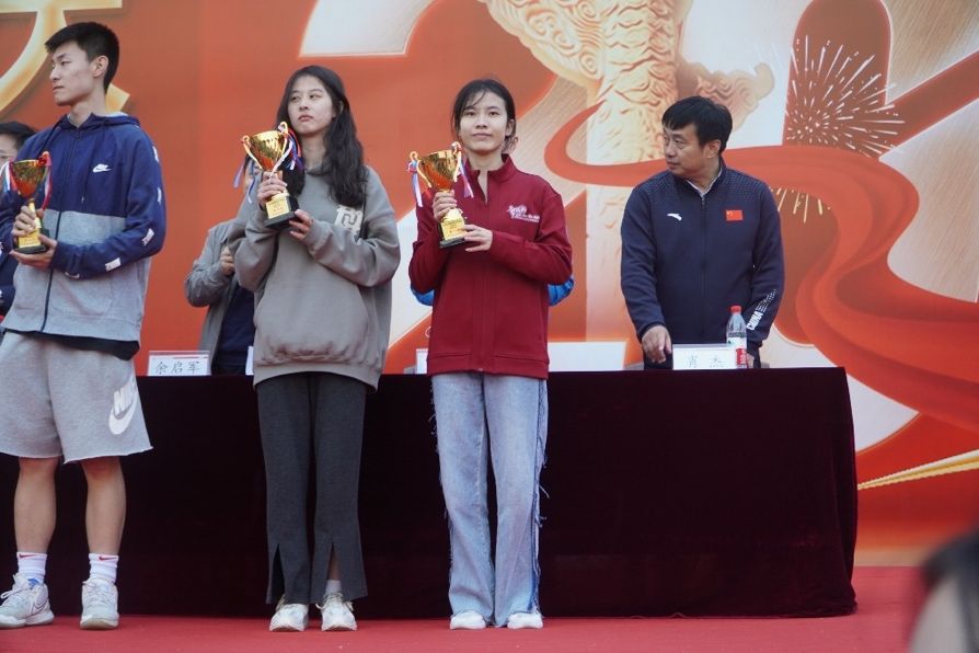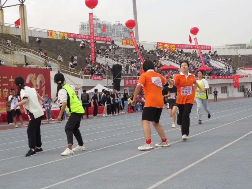 在团体项目中,我院学子以恒心、决心、信心,在各个项目中大放异彩,奋勇争先,分别在男女混合4×400米接力比赛中斩获第三名、足球射门比赛中斩获第三名、绕“8”字跳绳比赛中斩获第四名、龙凤戏珠比赛中斩获第二名等佳绩。教工组也在拔河比赛中获得第四名、羽毛球比赛中获得第七名的优异成绩,充分展现了我院老师在认真负责的教学工作之余,也坚持体育锻炼,强身健体,保持强健体魄和良好的精神风貌,以自身的全面发展为我院学子树立优良楷模。其中教工组拔河比赛第三轮对到法学院,比赛第二局陷入焦灼状态,双方老师僵持近十分钟,绳子向两边不断摆动,场上的老师拼尽全力,以身作则的教导学生何为不放弃、不言弃,场外两个院的学生纷纷为自己学院的老师喝彩助威,公管学院学子们在此过程中展现了惊人的凝聚力和学院荣誉感。